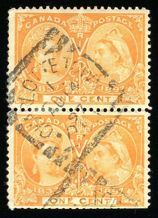 2032 S o 51 VF vertical pair, CHARLOTTETOWN 1 AU 14/97 PEI sq.cir. Some trimmed perfs.
