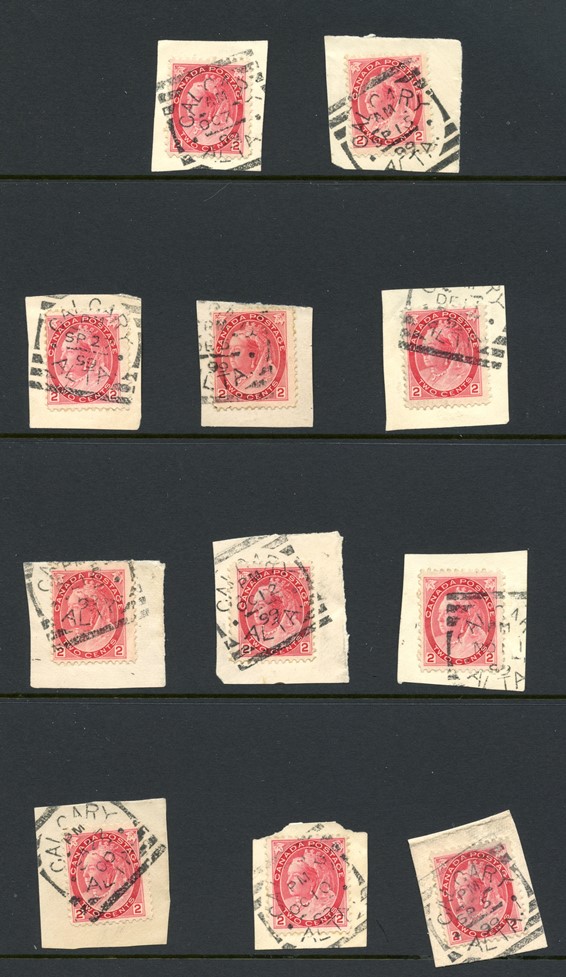2046 S o CALGARY SQUARE CIRCLES include (2)AM, (9) PM from 1899-1900, on piece on page