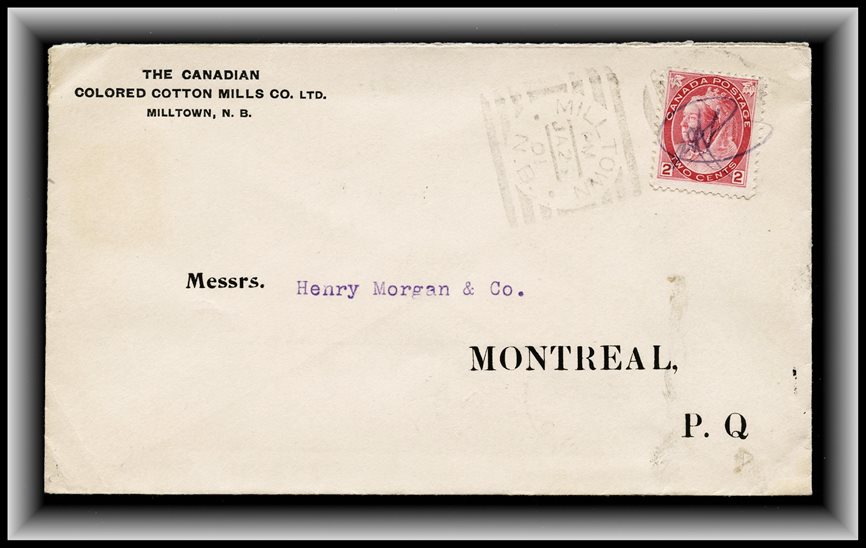 2049 S o/CVR 77 MILLTOWN PM JA24/01 N.B. sq.cir. on Cdn Colored Cotton Mills Co.cvr. F-VF