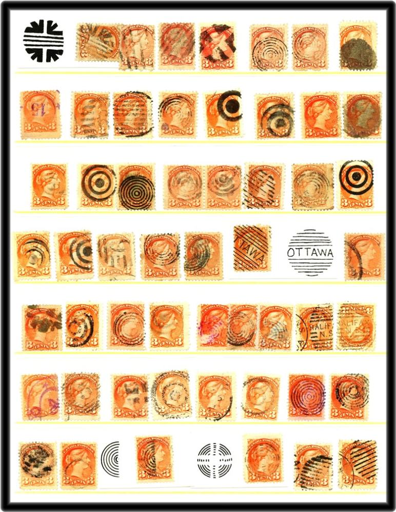 2312 S o Fancy Cancels - 30 stamps incl crosses, D's, M, #1, Crowns, Smith Falls, Lindsay