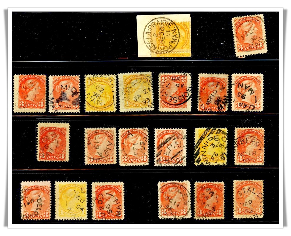 Calgary,various Manitoba. 45 stamps,75% full dates,Hard to find these days