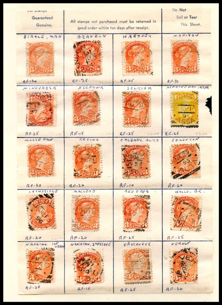2309 S o SMALL QUEEN WESTERN CANCELS on mostly 3c Sml. Queens incl: Mission City B.C.,