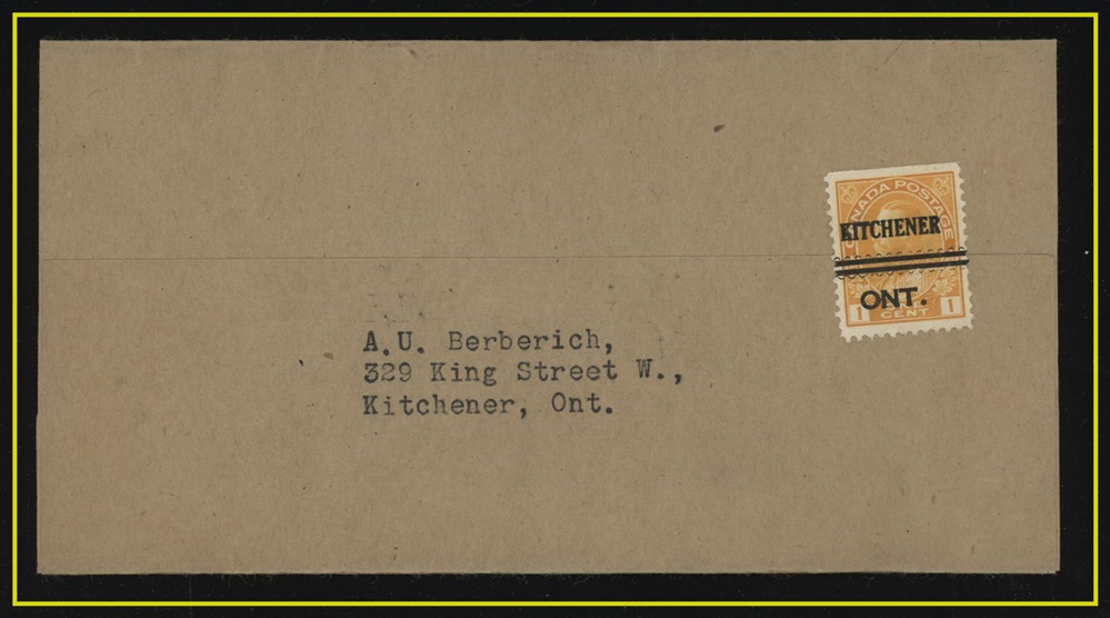 3363 S o/WRAP 104 KITCHENER ONT Precancel on wrapper(drop delivery)