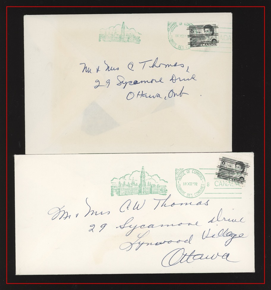 3366 S o/2CVR 1972 6c Precancel Centennial with HOUSE OF COMMONS 18/X11/72 Parliament Machine